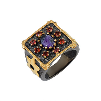 صلب فضي إسترليني أسود مطلي بالروديوم طبيعي سوغيليت بيضاوي عقيق أحجار كريمة لحفلات الزفاف للنساء خواتم مجوهرات راقية