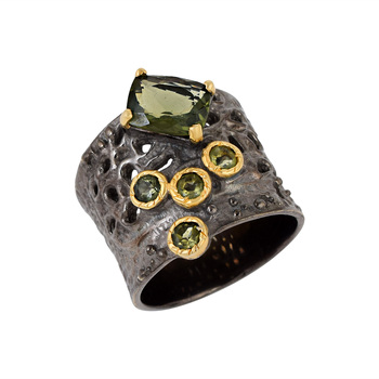 Anillos de piedras preciosas de moldavita de moda chapados, anillo sólido de diseño Vintage, joyería fina, oro, Plata de Ley 925, banda negra, Plata turca