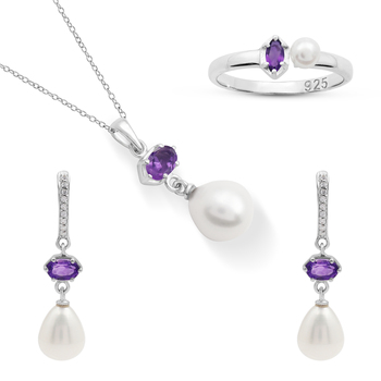 Haute qualité 925 argent Sterling ensemble de bijoux ethniques 6x4MM améthyste perle pierres précieuses collier anneau boucle d'oreille anniversaire de mariage