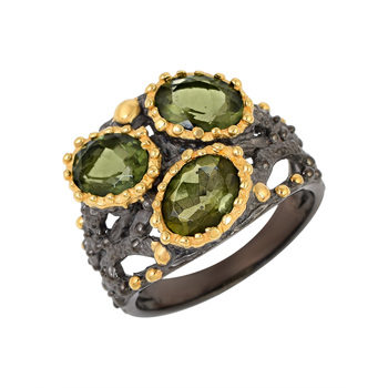 Bague en moldavite en argent sterling 925 ovale à facettes pierre précieuse de Noël bijoux fins pour femmes pour mariages