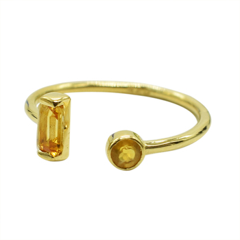 Offre Spéciale 925 bague manchette en argent sterling 14K plaqué or pierres précieuses Citrine Fine bijoux délicats pour la fête des mères en gros
