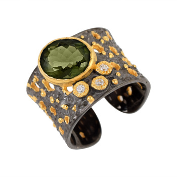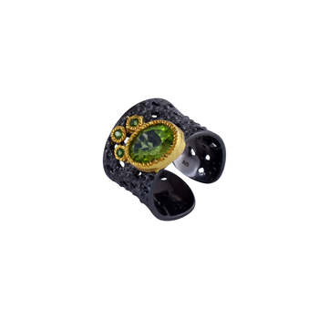 925 Sterling Silver Black Rhodium Plated Adjustable Rings Natural Peridot Faceted Oval Cut Gemstone Fine Jewelry for Weddings