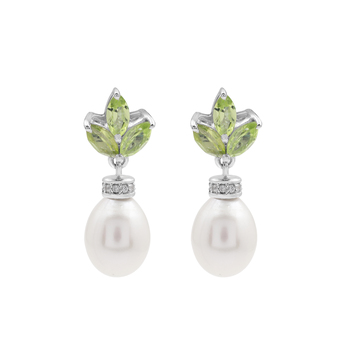 Peridoto verde triplo taglio Marquise con gemma di perle pendenti rotonde 925 argento Sterling orecchini pendenti 6.2 Gm alta gioielleria