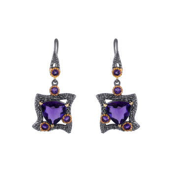 Orecchini di dichiarazione fatti a mano naturale ametista da trilioni di taglio sfaccettato con incastonatura solida 925 diamante di perle sottili Sterling