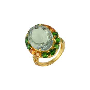 Gioielli raffinati fatti a mano per le donne di tendenza Custom Rod verde ametista gemma anello con punta di diamante
